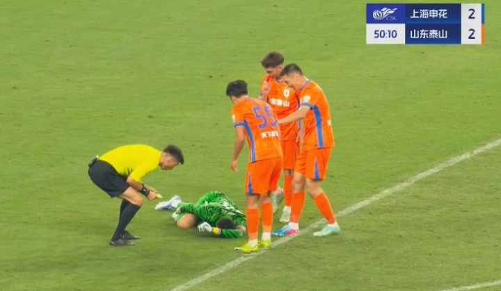 比赛第51分钟,王大雷开球时遭蒋圣龙犯规倒地不起,蒋圣龙吃到黄牌。